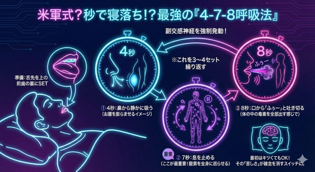 つまり、やるべきは「眠くなるのを待つ」ことではなく、「副交感神経(リラックス神経)」のスイッチを、物理的に『カチッ』と押してあげることです。